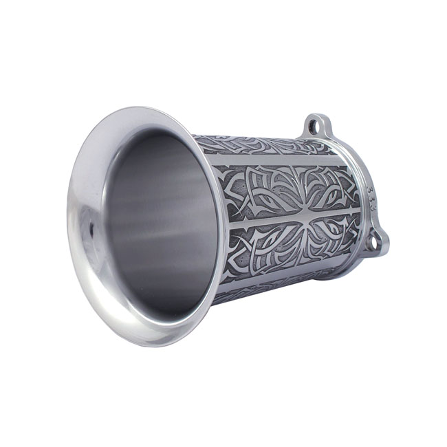 Polished finish. Machined from aluminum material with a tribal etched design. Note: Not recommended for regular street use since no filter element is present or available.; FITS: S&S Super E/G carburetors